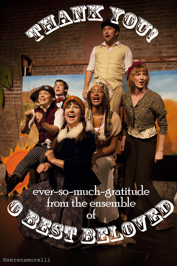 The Original Ensemble of O Best Beloved in a pose of the most gargantuan gratitude
